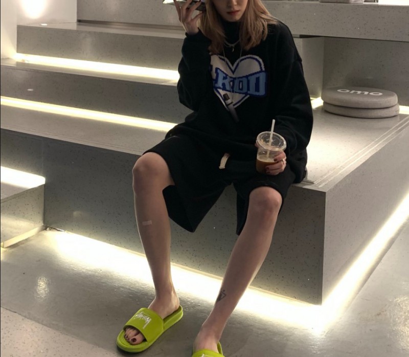 如果对自己的脖子不太自信的人也可以选择搭配格子衬衫或者是其他有领子的衬衫,这样可以做一个遮挡,但是如果脖子不是很长的人就不太建议啦!脖子短的可以像我一样直接穿毛衣,下面搭配了一条短裤,超级cool的好吗~