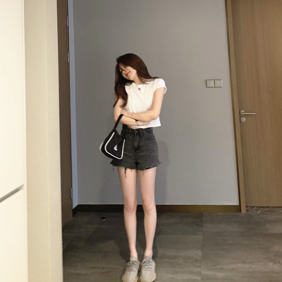 这是我购入的另外一条黑色短裤,同样也是A字版型的,超级显腿长,这次我搭配了一个黑色的吊带跟匡威,这样穿显得腿很长而且整体的比例都很好看!